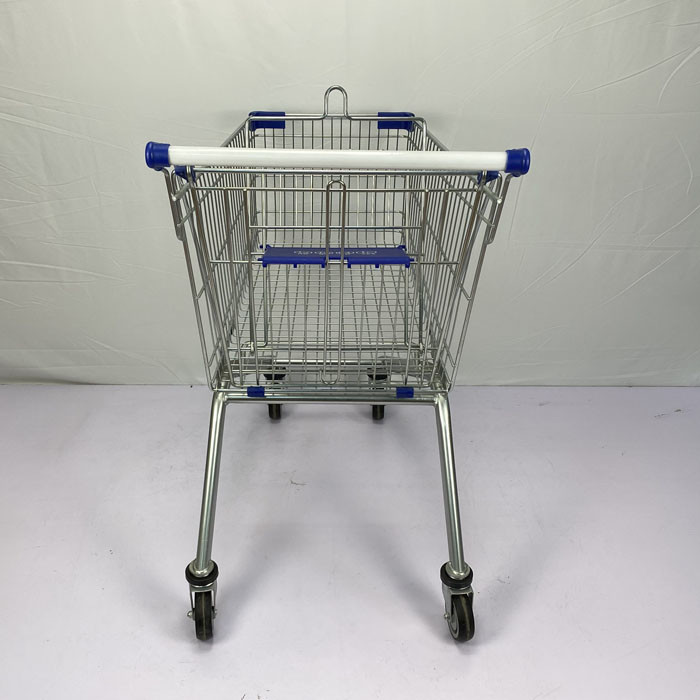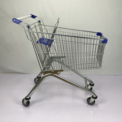 125L European Regular Multi scene Supermarket Trolley Zinc and Powder coating with Blue Plastic Parts and TPR Wheels