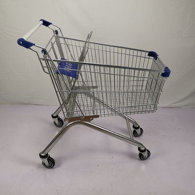 European Style 125L Supermarket Shopping Metal Trolley Anti-Theft With Blue Plastic PU Wheels